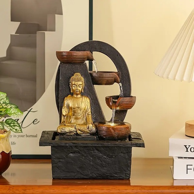 仏像 置物 オブジェ 噴水 卓上噴水 ゴールド 黄金 幸運 金運 健康運 出世運 家庭運 家内安全 インテリア 玄関 リビング 贈り物 プレゼント 魔除け 和モダン
