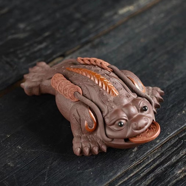 蛙 カエル 置物 オブジェ 紫砂 ブラウン レッド 高級感 財運 金運 開運 運気アップ リビング インテリア スピリチュアル 幸運 開運 浄化 幸運 開運 厄除け