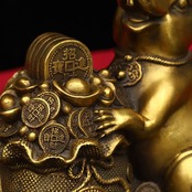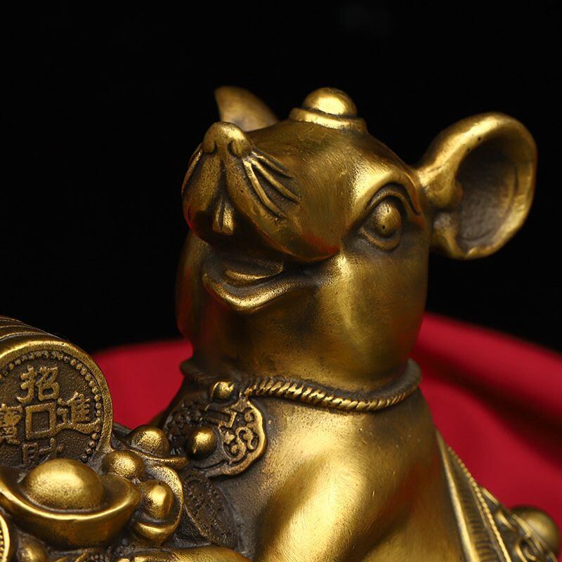 この黄銅製のネズミ(子)の置物は、風水で「財」を象徴するモチーフとして人気が高い開運アイテムです。金色の輝きをまとったネズミが銭袋を抱える姿は、まさに「財を呼び込む力」と「努力による成功」の象徴とされています。
