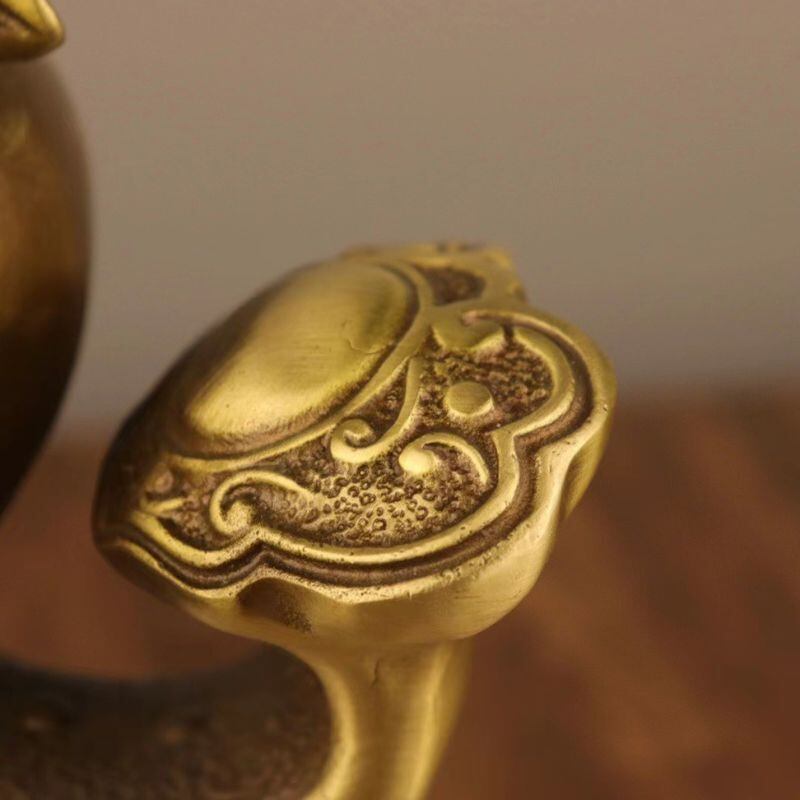 素材には銅が使用されており、風水では「金」の属性を持つ金属製の置物は、守りを強め、安定感や財運の流れを整えるアイテムとしても好まれる傾向があります。実際にこのような置物は、玄関に置いて外からの気の流れを穏やかに整えたり、リビングや書斎に飾って家族や仕事仲間との円満な関係を意識したりと、さまざまな暮らしのシーンに取り入れられています。