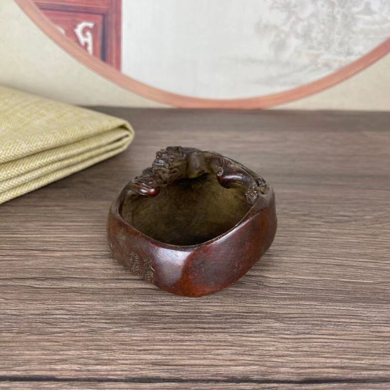 墨汁入れ 墨入れ 置物 文房四宝 筆洗 龍彫刻 書道用品 墨水入れ 風水 インテリア 筆置き 書斎 書道道具 書道 開運グッズ 運勢アップ 中国風 縁起物 茶道具 水碟 伝統工芸品 木製調 渋い 飾り アンティーク調 机上整理 墨碟 書法用品 | 幸せの置場