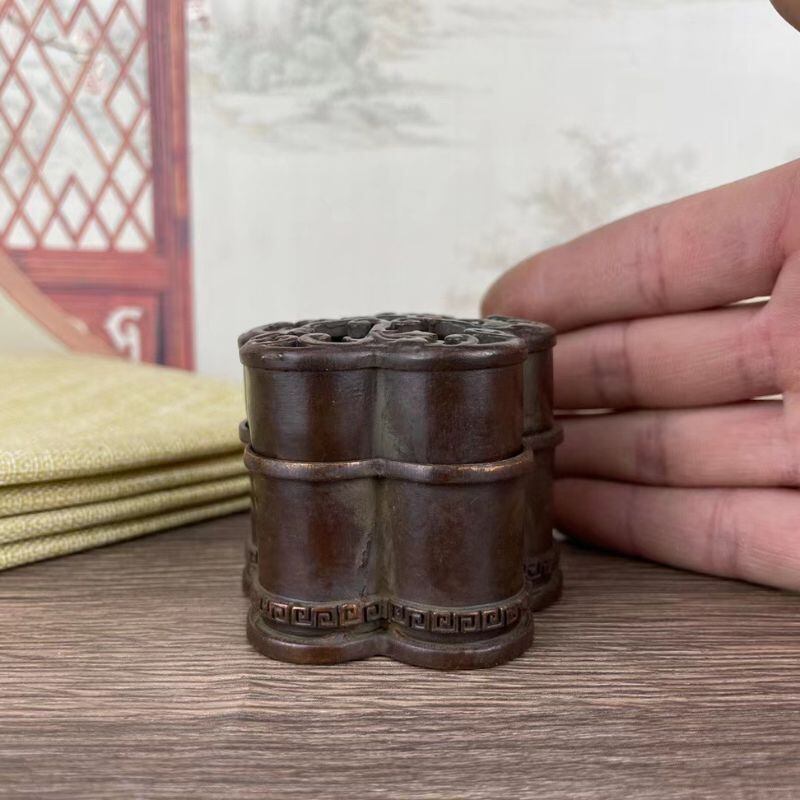 こちらは、伝統美と静謐な存在感をあわせ持つ、純手工で仕上げられた蓋付きの銅製香炉です。クラシカルな梅花型のフォルムに加え、細密に施された透かし彫りの蓋が印象的で、煙が柔らかく立ち昇る様は、空間に穏やかな時間の流れをもたらしてくれるかもしれません。