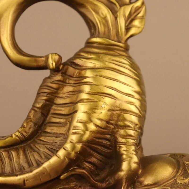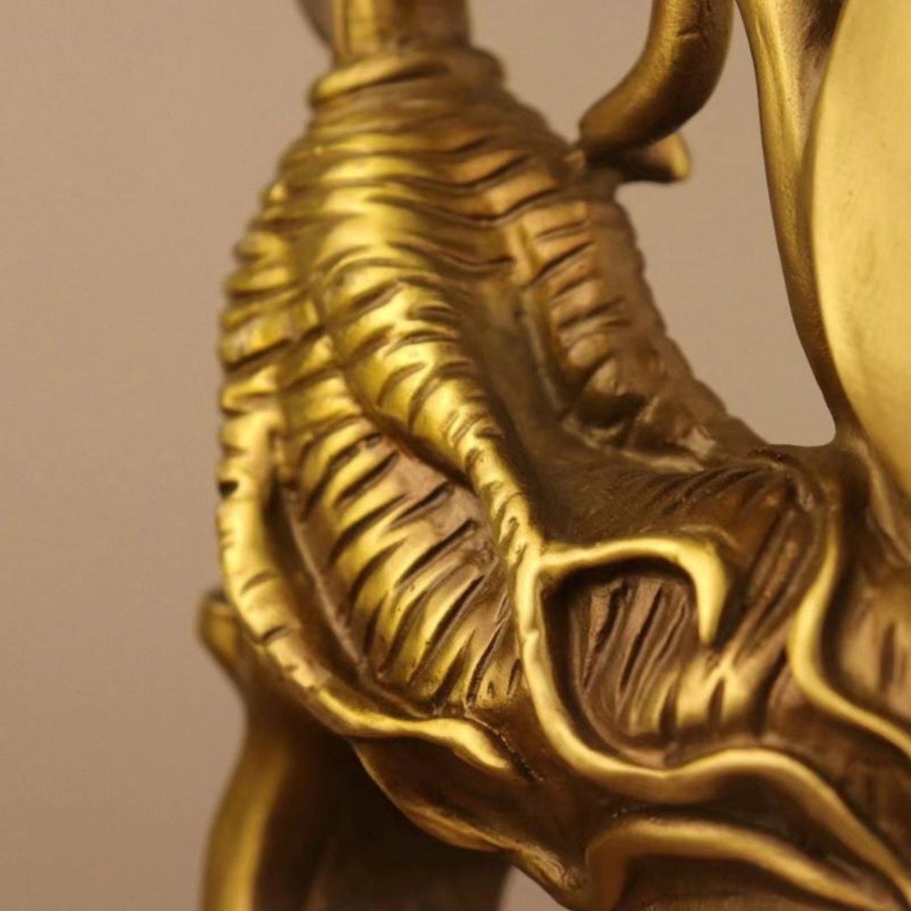 中央の円盤には「人生如意(人生が思い通りになりますように)」の文字が刻まれ、その言葉が放つ力強さと美しい輝きが、空間に前向きな気をもたらしてくれるかもしれません。黄銅製ならではの艶やかさと重厚な造形が、お部屋の中心に堂々とした存在感を演出し、風水的にも「金」の要素を取り入れることで、金運や仕事運の強化に役立つと考えられています。