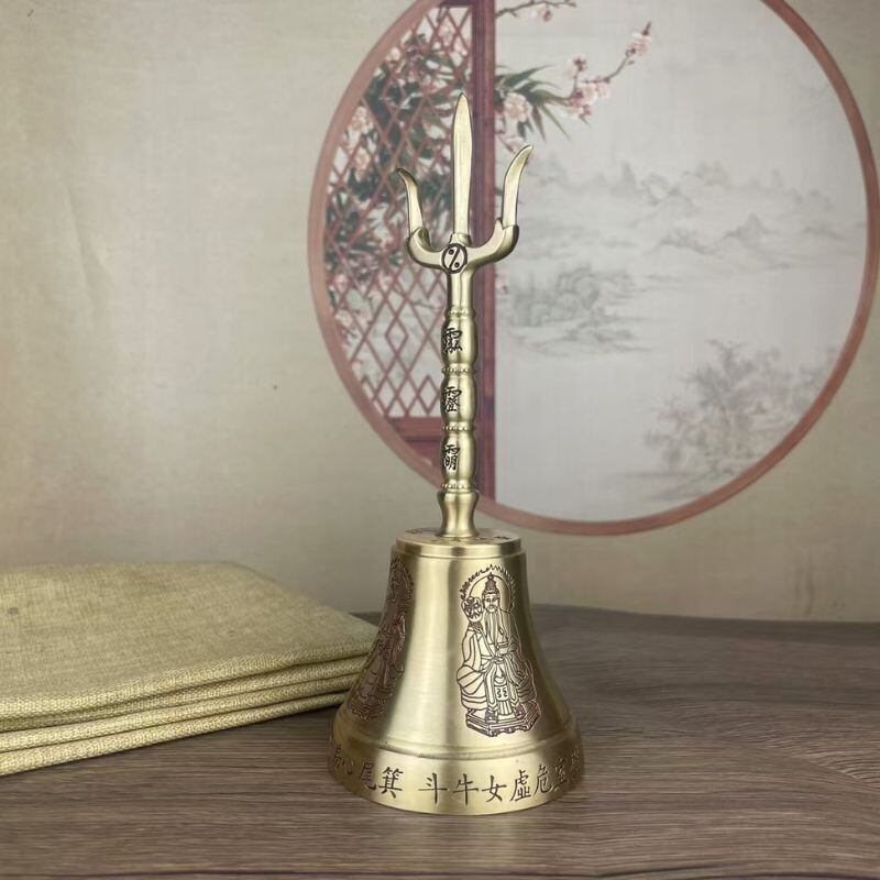 上部の三又は「三清」に由来し、天地人の調和、陰陽のバランス、そして浄化・守護・祈願の三大要素を象徴する形とされてきました。鈴の音は空間にこもる邪気を払い、場を清めると信じられており、儀式の際にはもちろんのこと、個人の暮らしの中でも気のリセットや集中力を高めたい時などに鳴らされることがあります。