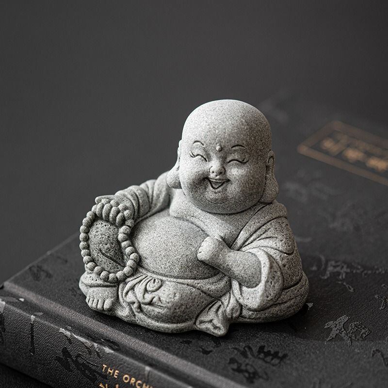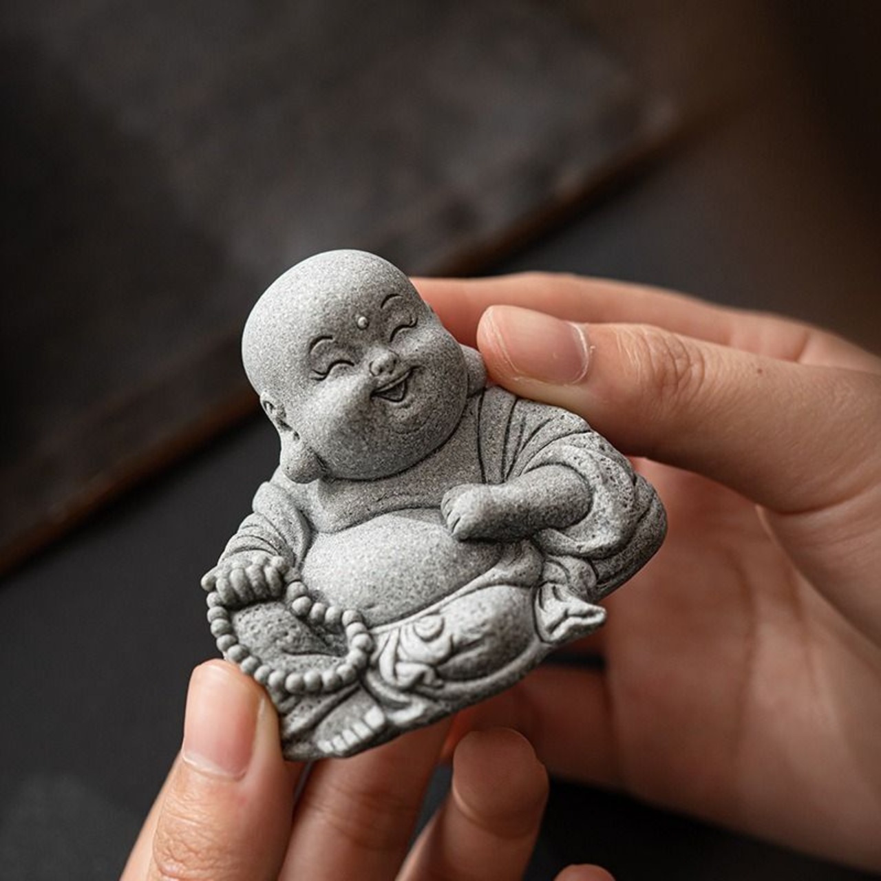 仏教の僧侶を象ったオブジェで、心を落ち着け、日常に穏やかなエネルギーをもたらすアイテムです。青砂石で作られたこの小さな置物は、精緻な細工と温かみのある表情が特徴で、どこにでも馴染む優雅なデザインです。