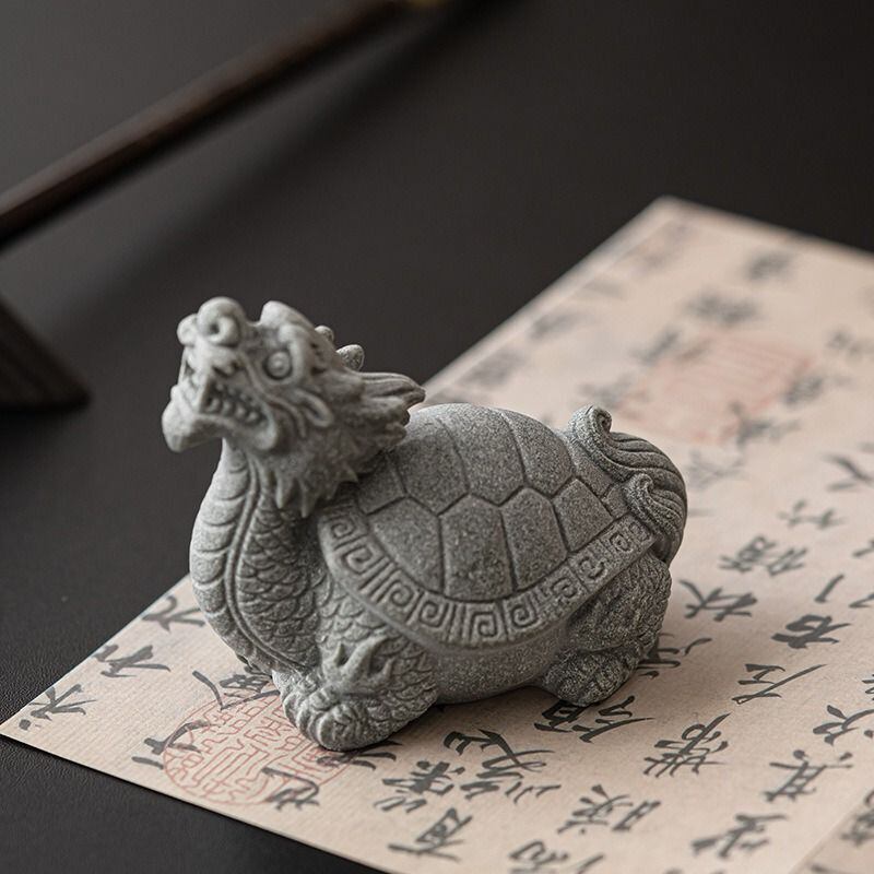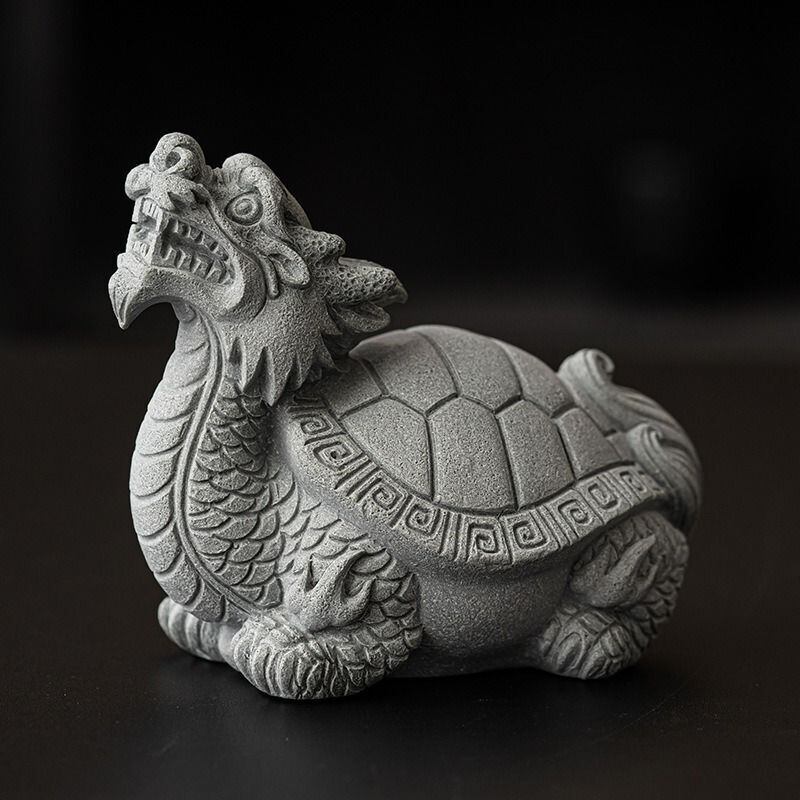風水や縁起物として広く信仰されている龍亀を模したオブジェです。龍亀は、古代中国から伝わる神秘的なシンボルであり、龍の力強さと亀の長寿や安定を象徴しています。この組み合わせが示すのは、繁栄、成功、長寿、そして守護です。特にビジネスや家庭の運気向上を願う方々に重宝されてきました。