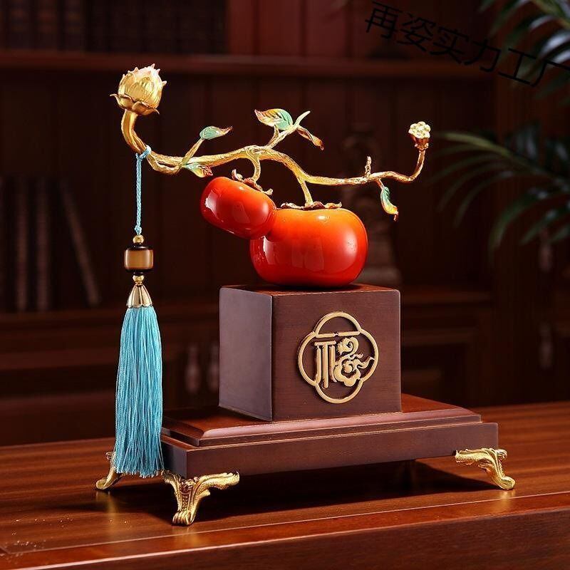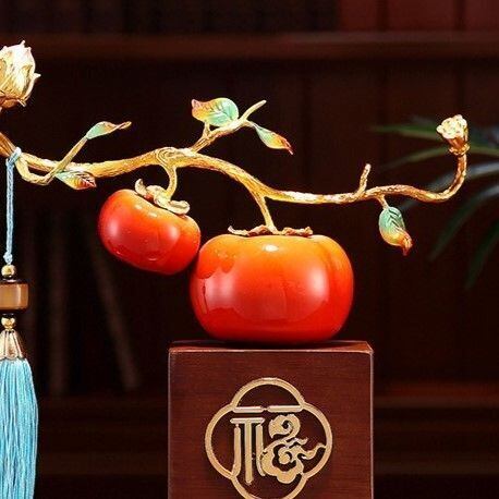 この豪華な柿の置物は、見た目にも美しく、インテリアとしても目を引く存在です。日常生活に幸運をもたらす象徴として、長く愛される一品となることでしょう。