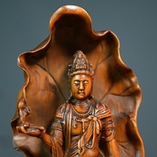 この木製の彫刻は、職人の手による精緻な彫刻が施され、観音菩薩の姿勢や表情、蓮の葉の細部まで丁寧に再現されています。インテリアとしても、静かな存在感を放ち、空間をより神聖で穏やかな雰囲気に包み込みます。癒しと守護を感じさせるこの置物は、信仰を重んじる方々にとって、非常に価値のあるアイテムとなるでしょう。