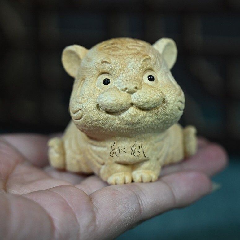 虎は古来より力強さや勇気、守護の象徴として多くの文化で尊ばれてきた存在です。その威厳ある姿とエネルギーは、家や職場を邪気から守り、良い運気を呼び込むと信じられています。この木製のミニ虎置物は、可愛らしいデザインながらも虎の持つ力強い象徴性を巧みに表現。