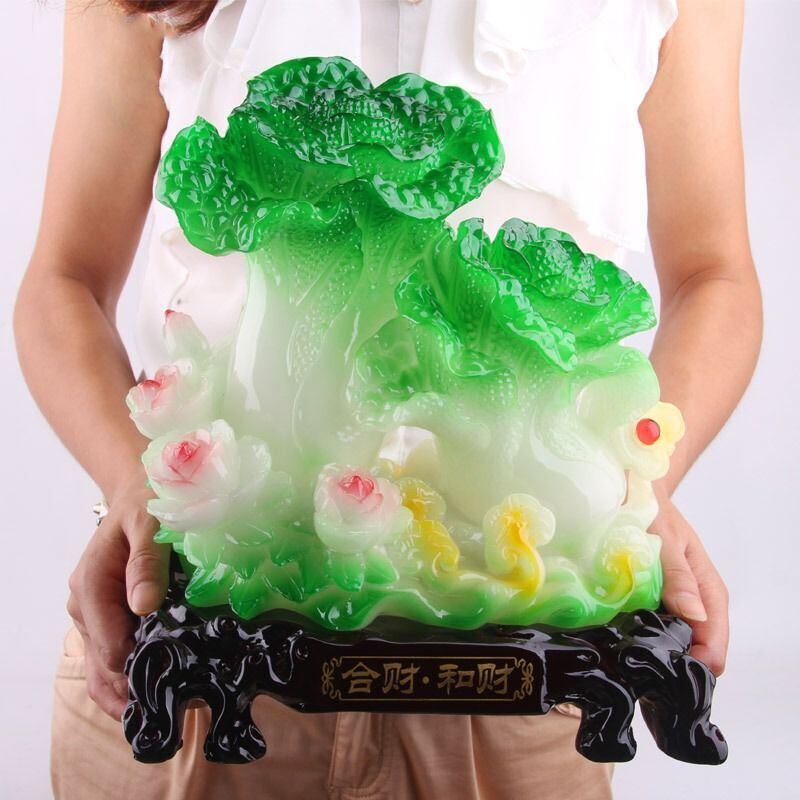 風水において白菜は、富や繁栄、安定を象徴するとされ、特に商売繁盛や財産の保全を願う方々にとって人気の高いモチーフです。このオブジェを飾ることで、豊かさを引き寄せるエネルギーを空間に呼び込み、生活全体にポジティブな影響を与えると信じられています。また、贈り物としても最適で、大切な人へのお祝い品やビジネスの成功を願うプレゼントとしても選ばれています。