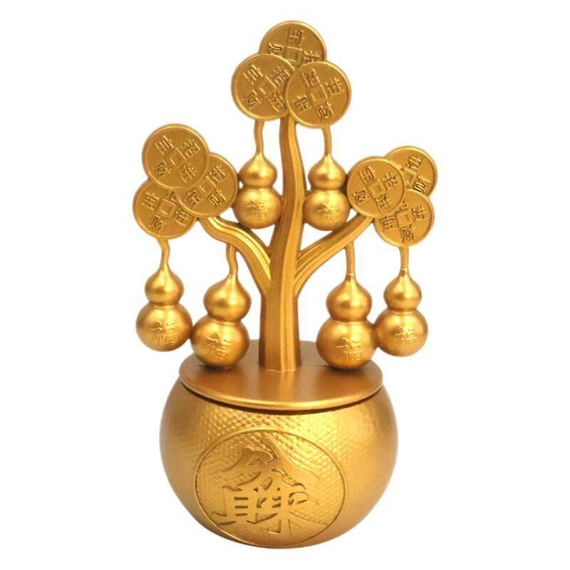 古来より財運や繁栄の象徴とされてきた「金のなる木」と、幸福や厄除けの象徴である「瓢箪(ひょうたん)」を組み合わせた、縁起の良いオブジェです。金色に輝く木には美しい瓢箪がたわわに実り、見るだけで豊かさと幸運が訪れるような雰囲気を感じさせます。