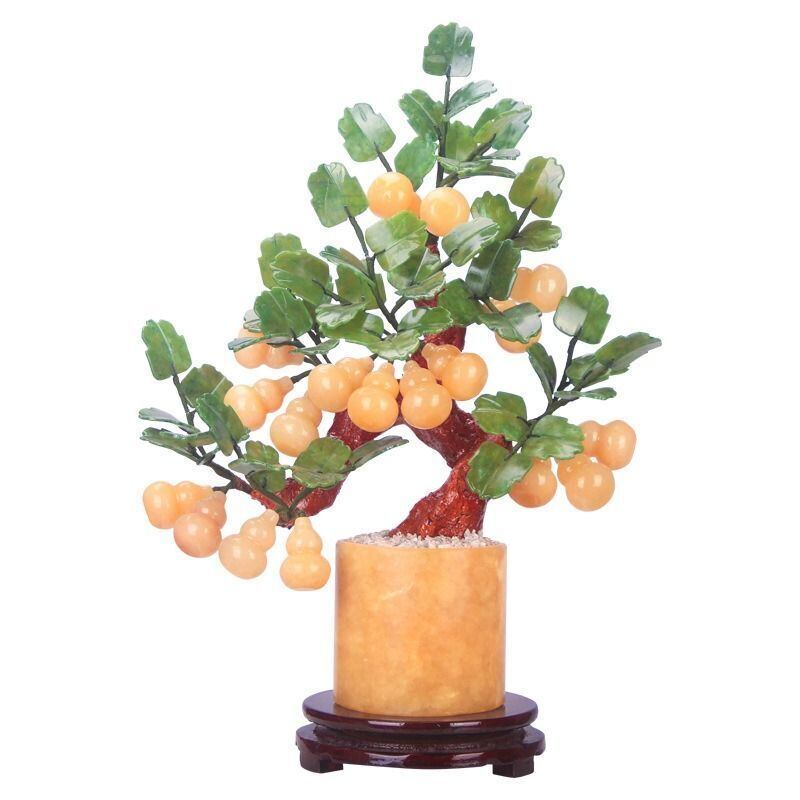 瓢箪は、古くから日本や中国の文化で「富」「幸運」「繁栄」を象徴する縁起の良いアイテムとされています。その形状は、金運や福運を呼び込むと信じられ、家や商売繁盛を願う人々に広く愛されています。この「瓢箪が沢山成った木」の置物は、その象徴的な瓢箪が枝に実るような美しいデザインが特徴です。