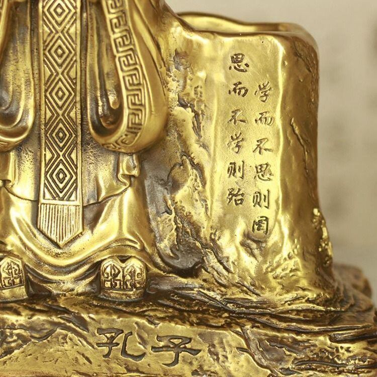 また、金色の輝きが持つ力強いエネルギーは、繁栄や発展を象徴し、持ち主の運気を高める助けになるとも言われています。この孔子の筆立てを飾ることで、日々の学びや仕事に集中できる環境が整い、ポジティブなエネルギーが流れる空間を作り出してくれるでしょう。