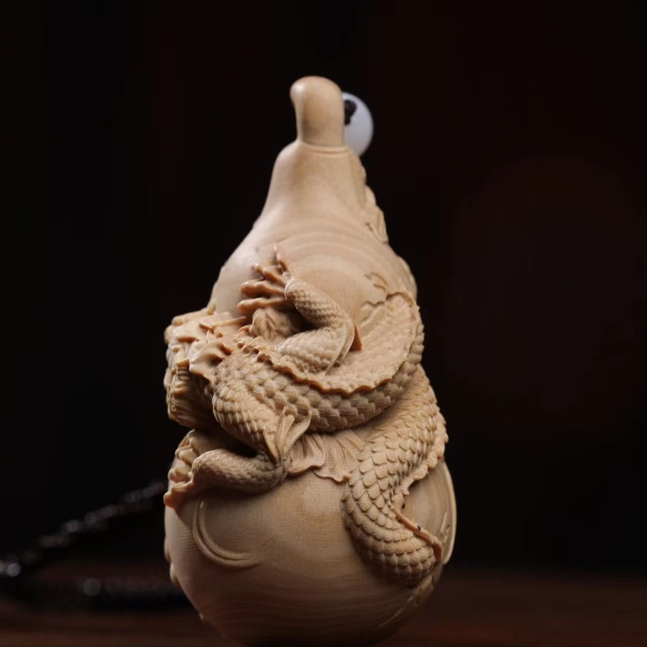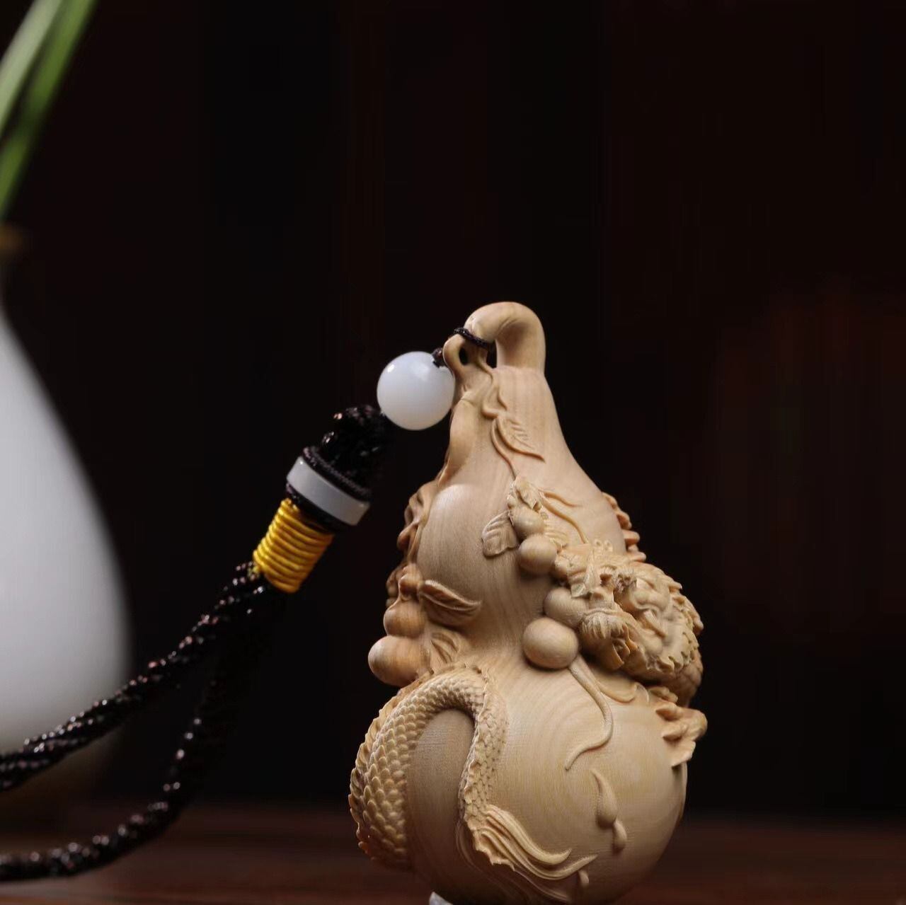 瓢箪(ひょうたん)は、古くから日本や中国で「福を呼ぶ」とされ、縁起の良い象徴とされています。その丸みを帯びた形状は、幸福や豊かさを引き寄せると信じられてきました。さらに、龍が巻き付いているデザインは、力強さと繁栄を象徴し、古代からの信仰の中で、龍は「守護」や「運気の向上」をもたらす存在として崇められています。この手提げペンダントは、瓢箪と龍が調和することで、幸運を呼び込む力がより一層強まるとされています。