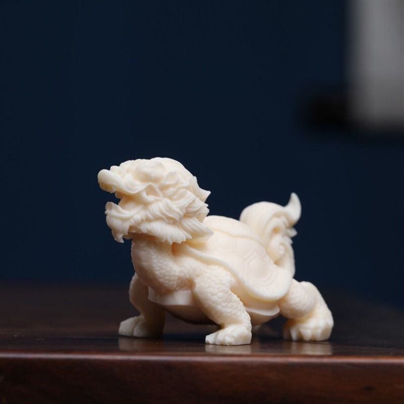 ホワイトカラーで仕上げられたこの龍亀像は、清らかさと浄化を象徴し、空間を穏やかで落ち着いたエネルギーで満たすと考えられています。龍亀の形は、困難を乗り越える力や知恵を授け、さらに家族や事業を守り続ける守護の力を持つと信じられてきました。このオブジェを飾ることで、日々の生活や仕事において、ポジティブなエネルギーが流れる手助けをしてくれるかもしれません。
