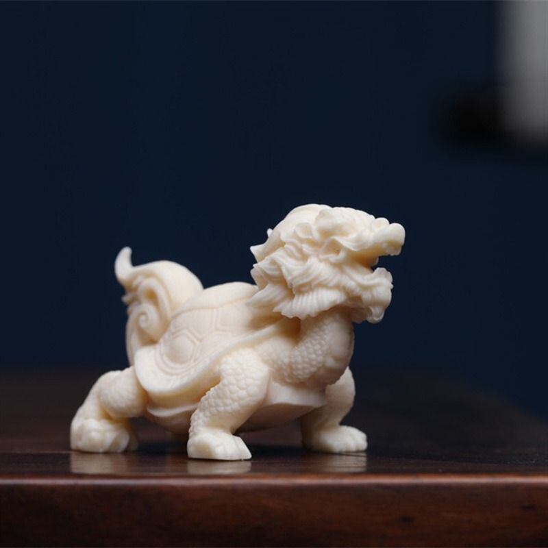 古代中国の神話に登場する「龍亀」をモチーフにした精緻なオブジェです。龍亀は、龍の頭と亀の体を持つ神聖な生物として、長寿、安定、繁栄を象徴するとされています。古くから商売繁盛や家庭の守護、そして運気の向上を祈願するために置かれてきた存在です。龍亀は特に、安定した富と栄光をもたらすとも信じられており、ビジネスの成功や経済的安定を望む方々に人気のアイテムです。