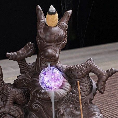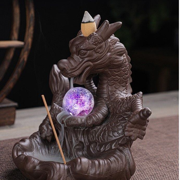 逆流香炉の特徴的な煙の流れは、滝が水を流すように下へと漂います。この煙の動きは、空間に静けさと安らぎをもたらし、風水では「気」を浄化し、良い運気を引き寄せる助けになると考えられています。さらに、龍が中央の珠を抱えるデザインは、願望を成就する象徴とされ、成功や繁栄を祈るアイテムとしても人気です。