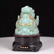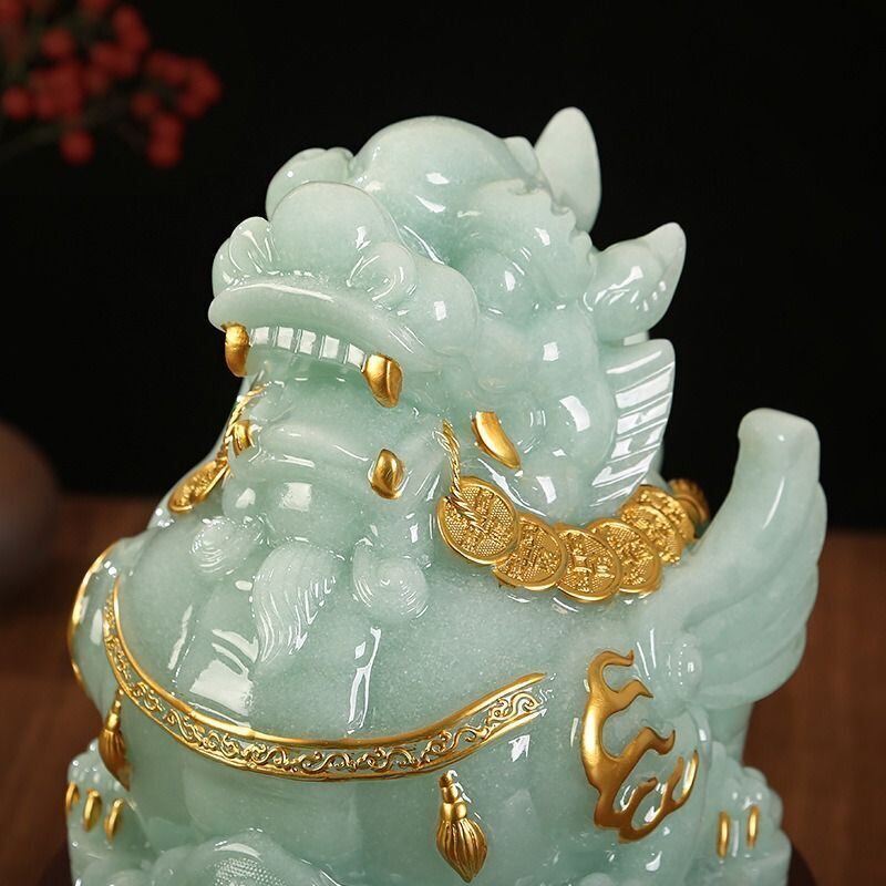 また、貔貅はその姿勢や方向によって意味が変わることが多く、この置物のデザインは金運や繁栄を最大限に引き寄せるとされる位置に配置されています。飾る場所に合わせて、その力をより高めると信じられています。