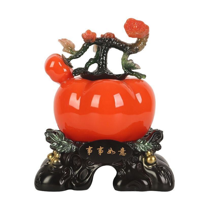 この「柿 置物 オレンジ」は、柿の果実の美しい色合いと細部にまでこだわったデザインが特徴です。オレンジ色は活力を与える色とされ、また金運や仕事運の向上を助ける力があると信じられています。特に、収穫の時期に家やオフィスに飾ることで、その空間にポジティブなエネルギーが流れ込むとされ、経済的な繁栄や家庭内の安定を願う方々に最適なオブジェです。
