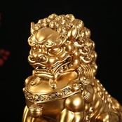 金色の獅子は、特に財運や繁栄を象徴する色とされ、金の輝きは富を引き寄せる力があると考えられています。そのため、この置物は金運を高め、商売繁盛や家庭の豊かさを願う方々にぴったりのアイテムと言えるでしょう。また、インテリアとしても高級感を漂わせ、空間に品格と華やかさを加えることができます。