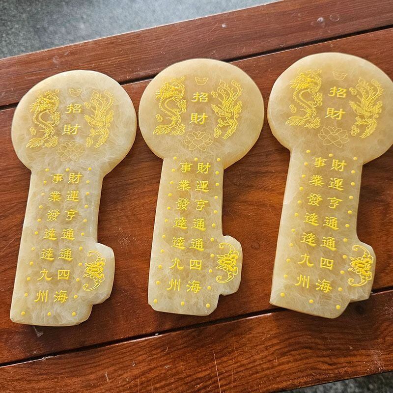 この美しい翡翠で作られた鍵の形をした置物は、風水やスピリチュアルの世界で長い間信じられてきた「財運の象徴」として、多くの人々に親しまれてきました。鍵は「開く」や「解放」を意味し、特に財運を開くためのシンボルとして用いられます。鍵のデザインに込められた意味合いは、まさに人生の新たな扉を開く力を象徴しており、金運や繁栄を引き寄せる助けとなると言われています。