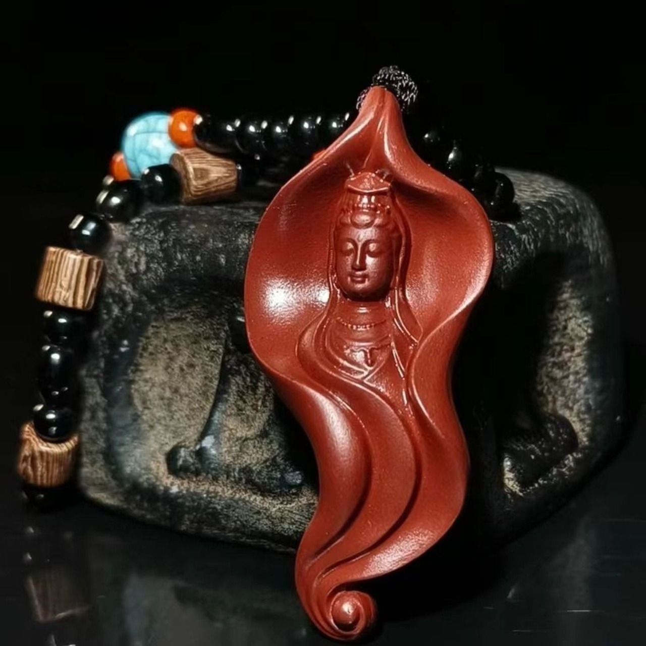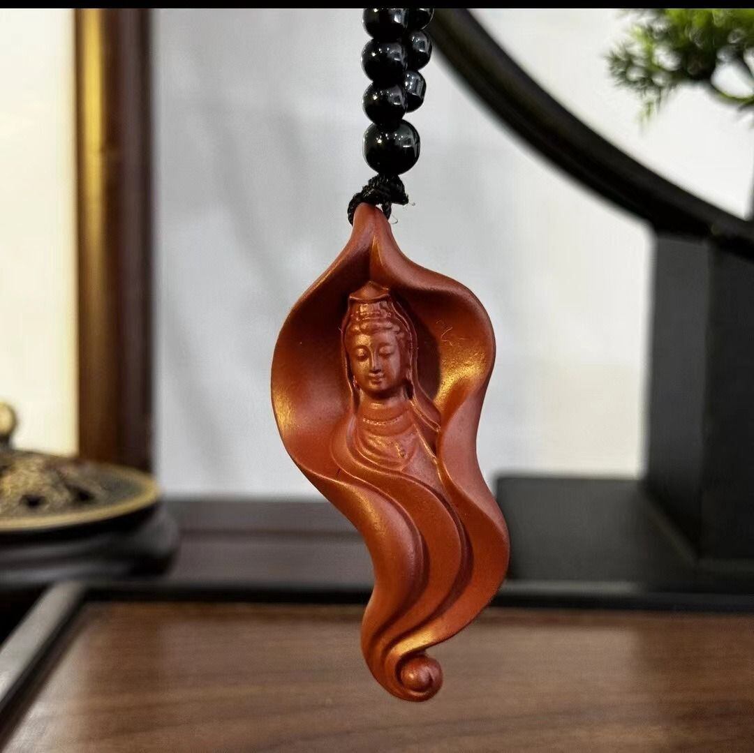 観音菩薩の優れた智慧と慈悲の象徴を身近に感じることができるこのペンダントは、ただのアクセサリーとしてではなく、精神的な支えとしてもお楽しみいただけます。上品な赤色は、インテリアにも映えるだけでなく、持ち主の心に安定感とバランスをもたらすかもしれません。心に寄り添い、日常を豊かにするこのペンダントは、贈り物としても最適です。