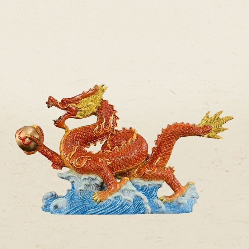 豪華な赤色の龍置物で、あなたの運気を高める空間を演出してください。