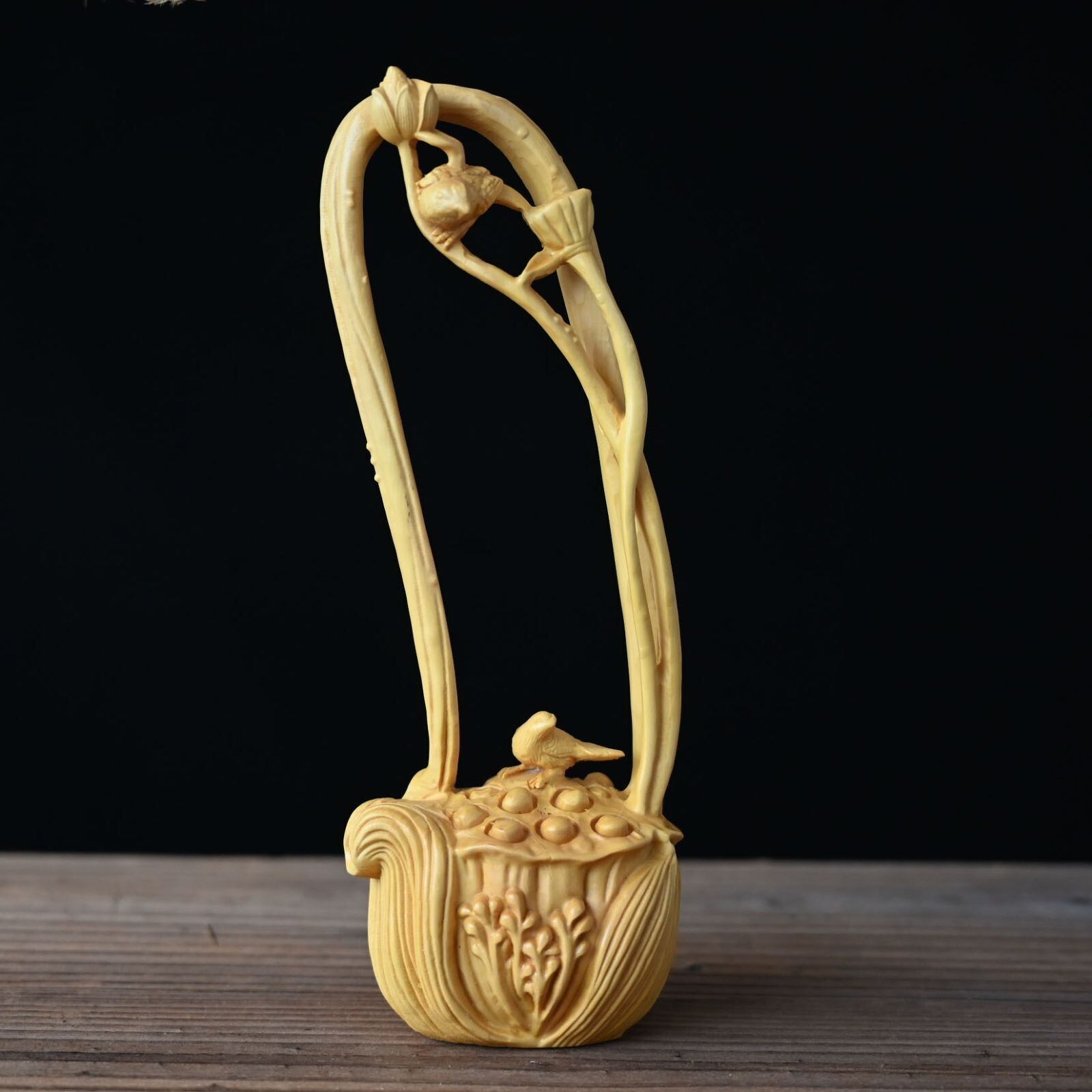 また、蓮の実の形は縁起が良いとされ、安定と繁栄を象徴するものとして、古来より多くの人々に愛されてきました。この木製置物をお部屋に飾ることで、心地よい浄化のエネルギーが広がり、穏やかで調和の取れた空間作りができるかもしれません。