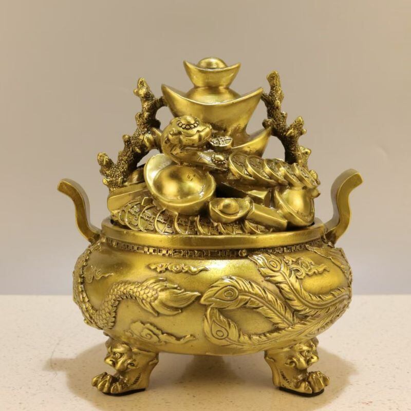 香炉 聚宝盆 置物 四方金蟾 龍鳳意匠 風水 オブジェ 線香立て お香立て 開運 財運 金運 財宝壺 貯金箱 銅製 玄関置物 金運 開運 縁起物 雑貨 レトロ 癒し雑貨 リラックス 室内用 アロマ置き 骨董調 開運グッズ 運勢アップ | 幸せの置場