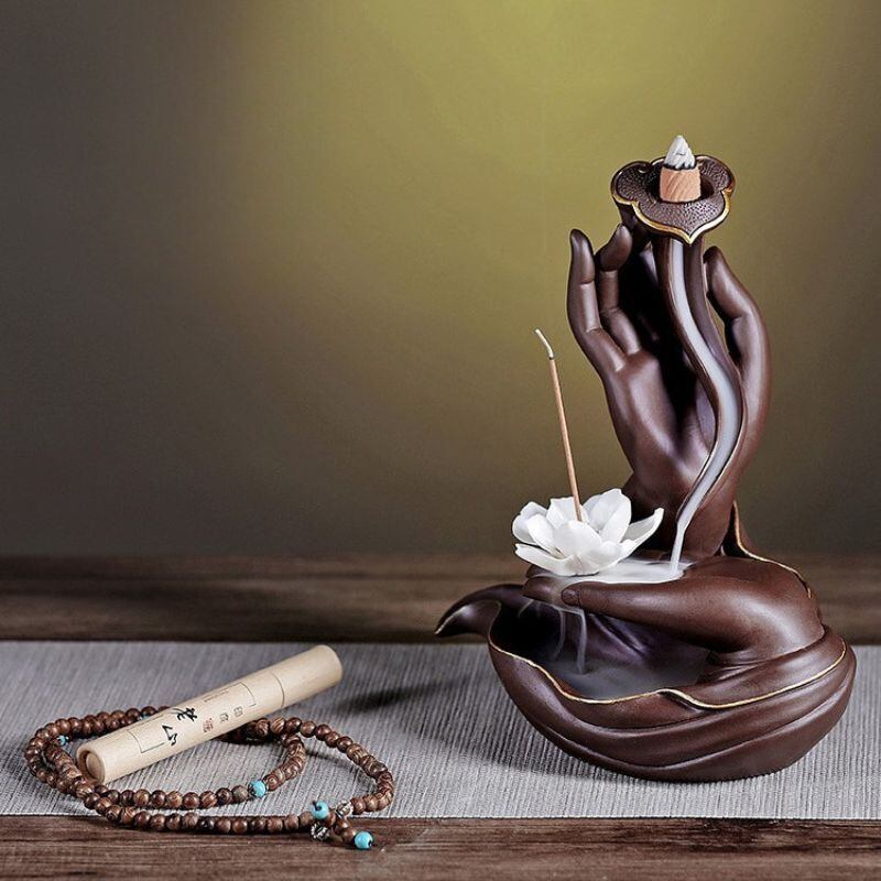 香炉 仏手 掌 蓮の花 ハス 白蓮 風水 倒流香炉 陶器 インテリア おしゃれ リバースインセンス 癒し 浄化 飾り 運気アップ 気 縁起物 風水置物 おしゃれ香炉 開運グッズ 邪気払い 開運 リラクゼーション アロマ 煙 香立て 癒しグッズ 風水アイテム 運勢アップ | 幸せの置場