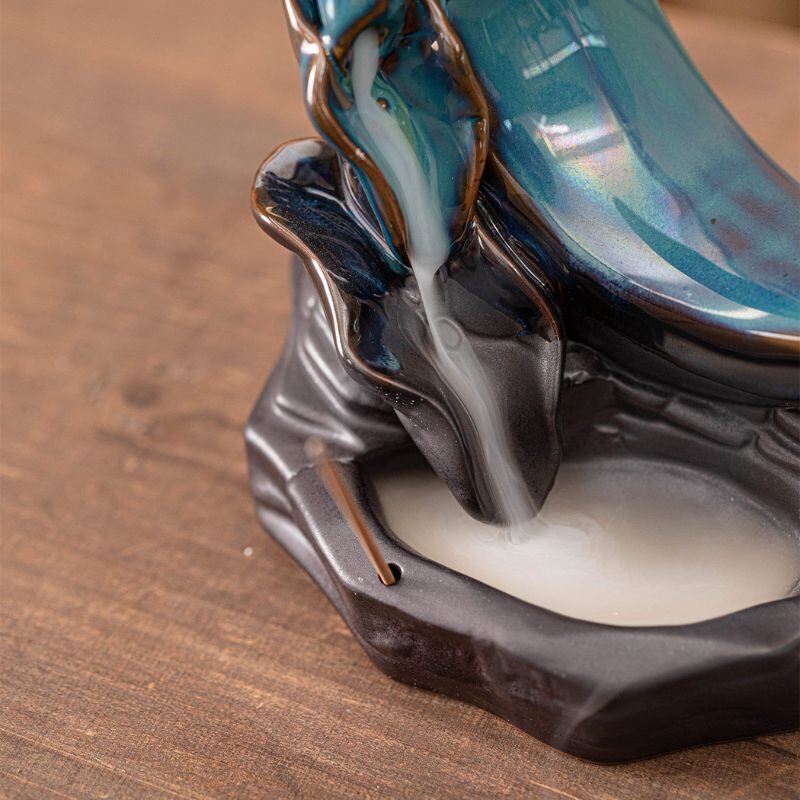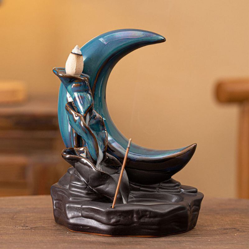 倒流式の香炉の煙が月の形を沿って流れる様子は、視覚的にとても美しく、幻想的な雰囲気を醸し出します。この流れは「良い気」を引き寄せ、空間を浄化し、負のエネルギーを排除する効果があるとも言われています。香りの煙が下に流れることで、無意識に安らぎを感じ、心身ともにリフレッシュされるでしょう。