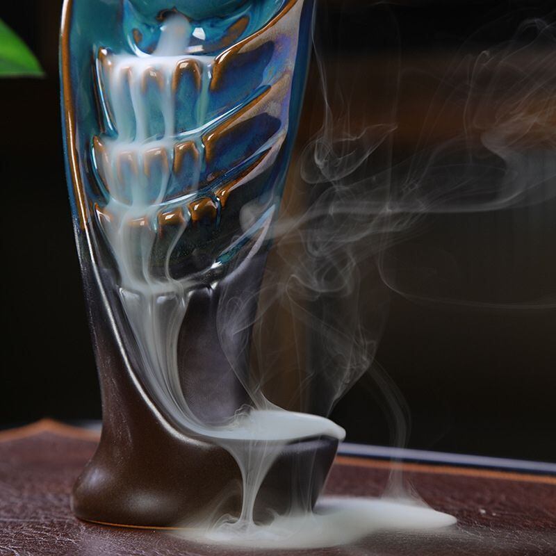 香炉は倒流式のため、香りの煙が下に向かって流れる様子が美しく、空間を浄化し、ネガティブなエネルギーを取り除く手助けをしてくれます。この流れは、風水において「良い気」を空間に呼び込む重要な役割を果たします。香りの煙がゆっくりと流れることで、リラックス効果が高まり、ストレスの軽減に役立ちます。