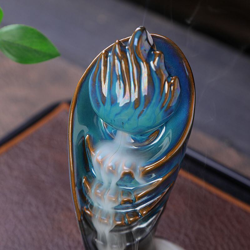 香炉 仏手 佛手 蓮花 蓮 ハス 風水 倒流香炉 陶器 線香立て お香 インテリア オブジェ 置物 おしゃれ リバースインセンス 癒し 浄化 飾り 金運 運気アップ 気 縁起物 風水置物 おしゃれ香炉 開運グッズ 邪気払い 開運 リラクゼーション アロマ 煙 香立て 癒しグッズ 風水アイテム 運勢アップ | 幸せの置場