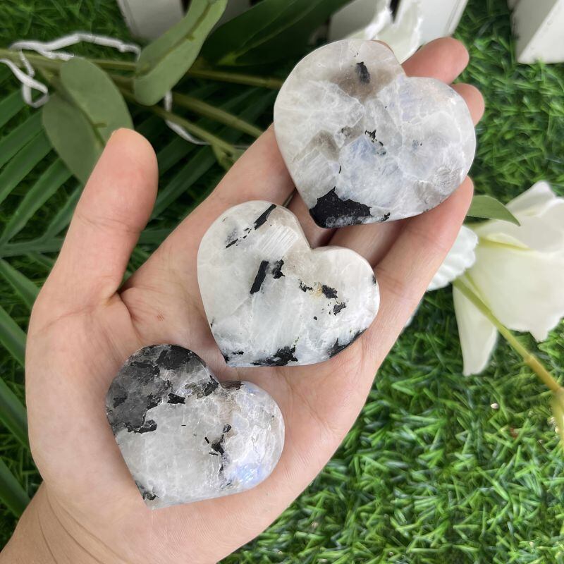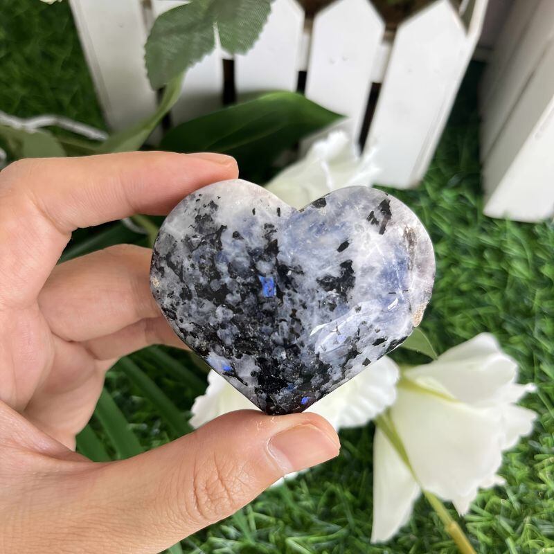 このハート型のムーンストーンは、愛と優しさのエネルギーを象徴しています。ハートの形は愛と感情の象徴であり、ムーンストーンと組み合わせることで、感情のバランスを整え、心の癒しを深める効果があります。ストレスや不安を感じている方にも、心を落ち着ける力強いサポートをしてくれることでしょう。