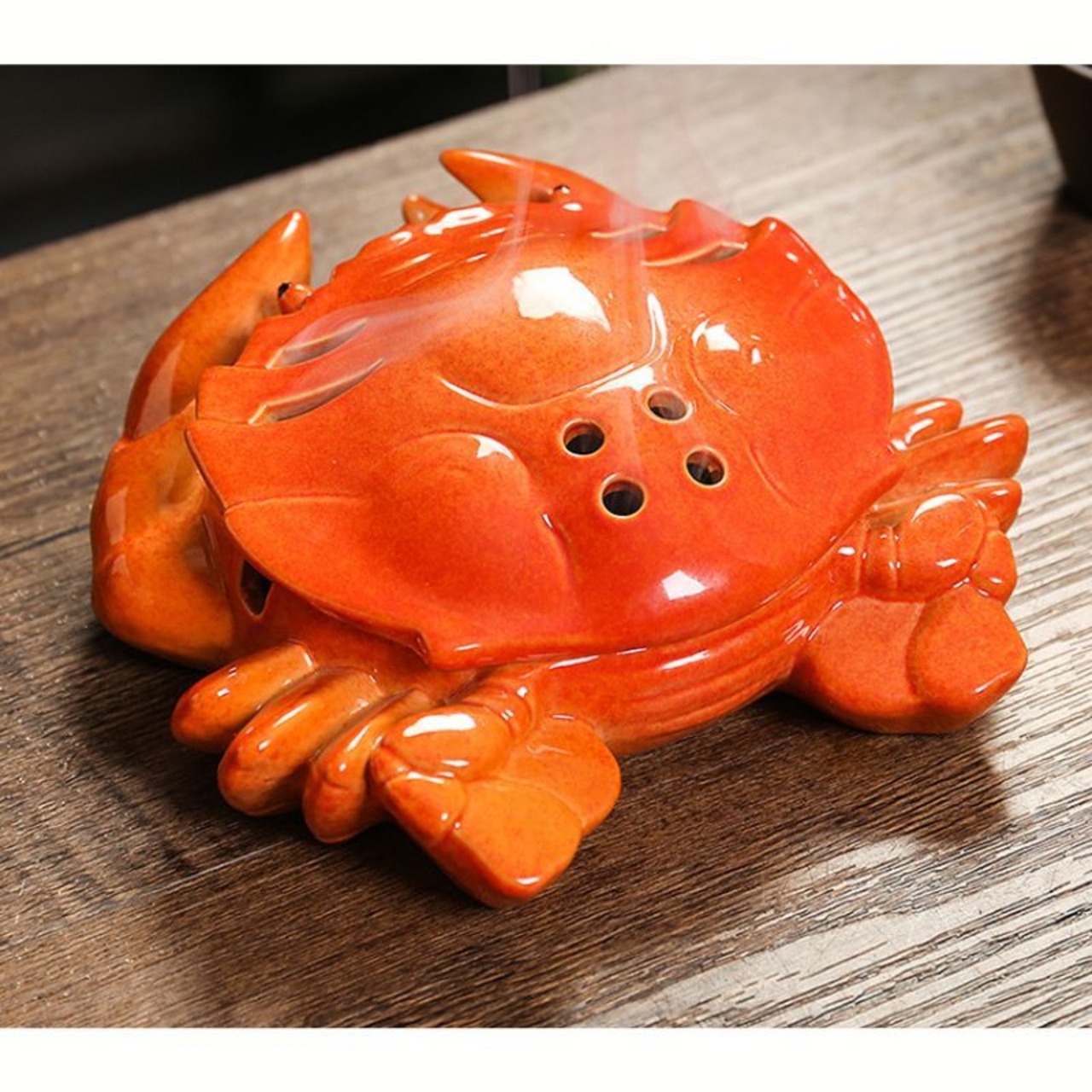 ユニークなフォルムと遊び心を兼ね備えた、蟹(カニ)モチーフの陶器香炉が登場しました。鮮やかな橙色の艶やかなボディは、見るだけで楽しく、空間に活気を与えてくれます。カニの姿をリアルかつ可愛らしく再現したデザインで、インテリアとしても抜群の存在感を誇ります。
