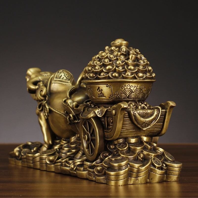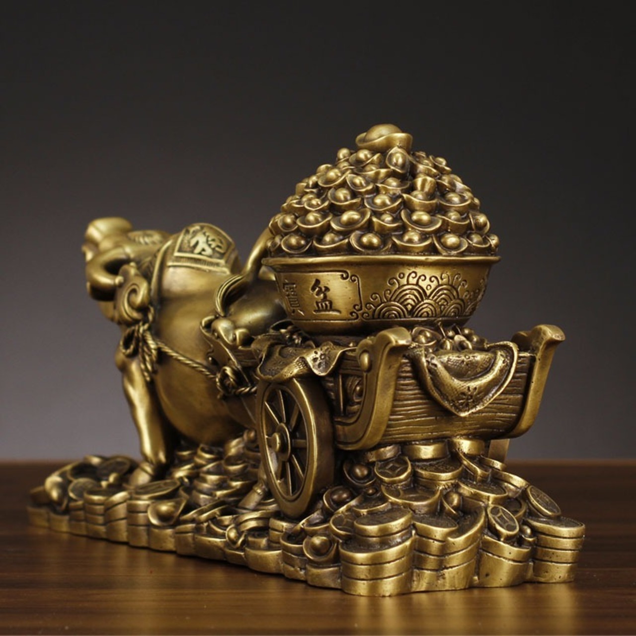 アンティークゴールドの仕上げにより、重厚感と品格が際立つデザインは、飾るだけで空間に特別な存在感をもたらします。この置物は、風水に基づき財運を呼び込むアイテムとして、玄関、オフィス、リビングなどに飾られることが推奨されています。特にビジネスや投資の成功を願う方にとって、理想的な象徴として親しまれるでしょう。