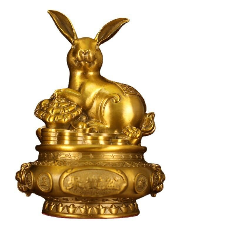 金色に輝くうさぎのデザインが特徴的な、縁起の良いオブジェです。うさぎは古来より、優しさ、敏捷性、繁栄を象徴するとされ、多くの文化で幸運をもたらす動物と信じられてきました。特に風水では、うさぎは家庭の幸福や愛情を象徴し、調和と豊かさをもたらすと言われています。