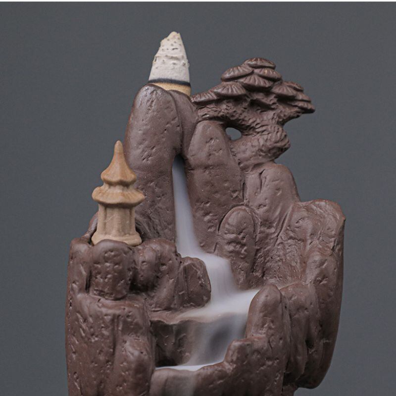 風水の観点では、「水」の流れは豊かさや繁栄を象徴するとされ、滝のモチーフはエネルギーを動かし、運気の循環を促す意味合いを持つことがあります。特に高い位置から低い位置へと流れる煙の様子は、良い運気がゆっくりと空間に満ちていくイメージと重なり、家や職場に心地よい流れをもたらす助けになるといわれています。
