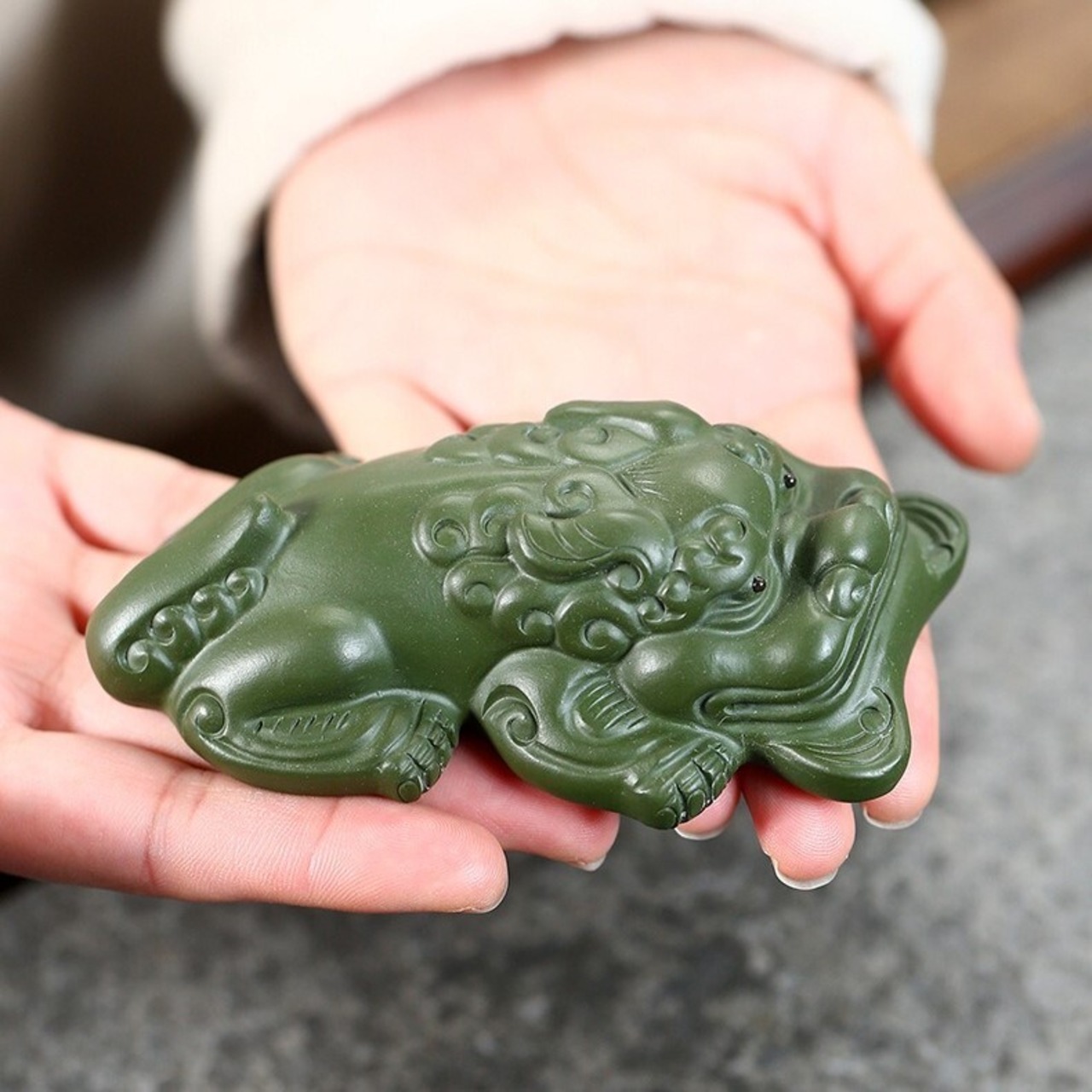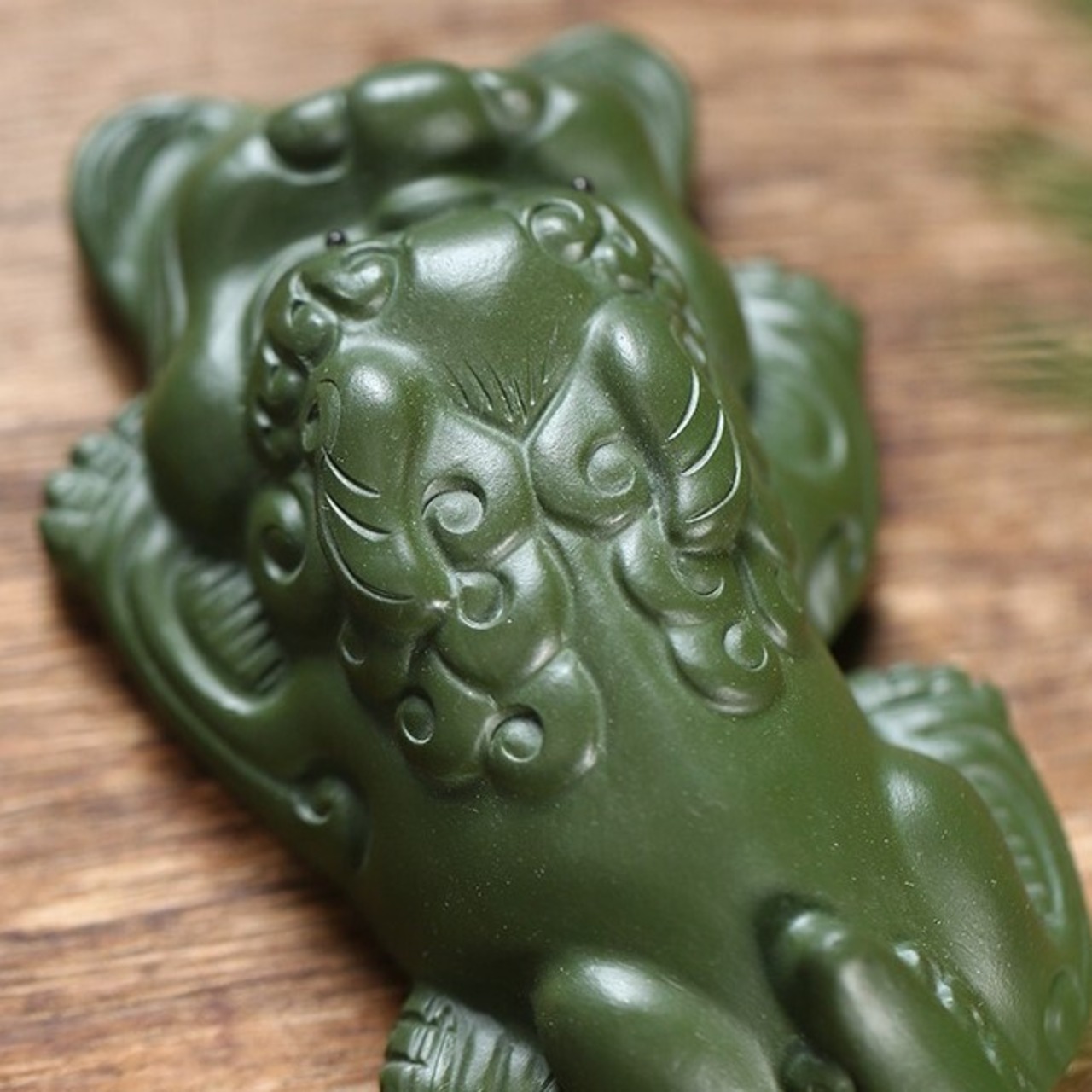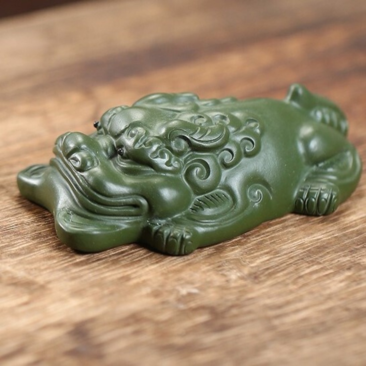 このミニサイズの貔貅は、グリーンカラーで作られており、緑は調和や成長を象徴する色として、穏やかなエネルギーを空間に呼び込むとされています。グリーンの貔貅を飾ることで、豊かさを引き寄せ、精神的にも落ち着きや安定を得ることができると信じられています。