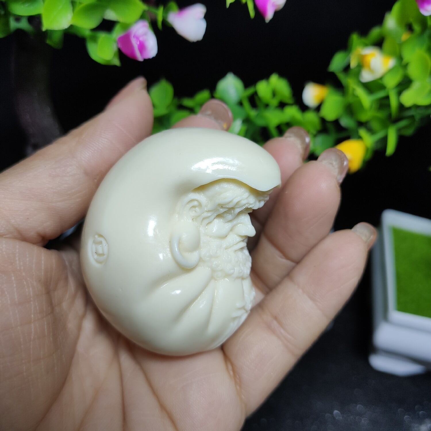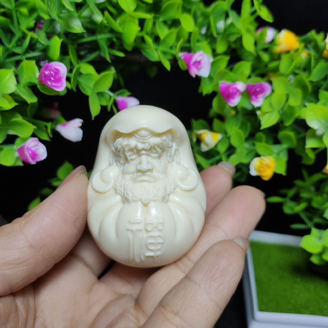 この置物は、白い象牙果の素材で丁寧に彫刻された美しい仕上がりで、精密なディテールが際立ちます。達磨大師の姿は、思索と瞑想の象徴として、心の静けさや精神的な安定を求める方々に特に喜ばれるでしょう。運気を高め、精神的な成長を促すと信じられてきたこのオブジェは、ビジネスや家庭での挑戦において、道を切り開くための励みとなるかもしれません。