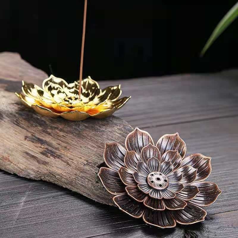蓮 香炉 香炉飾り 線香 お香 ブロンズ ゴールド 金色 黄金 仏 神様 神 仏の手 風水 縁起物 贈り物 プレゼント インテリア 玄関 高級感 運 開運 商売繁盛 黄金 リラクゼーション 寝室 | 幸せの置場