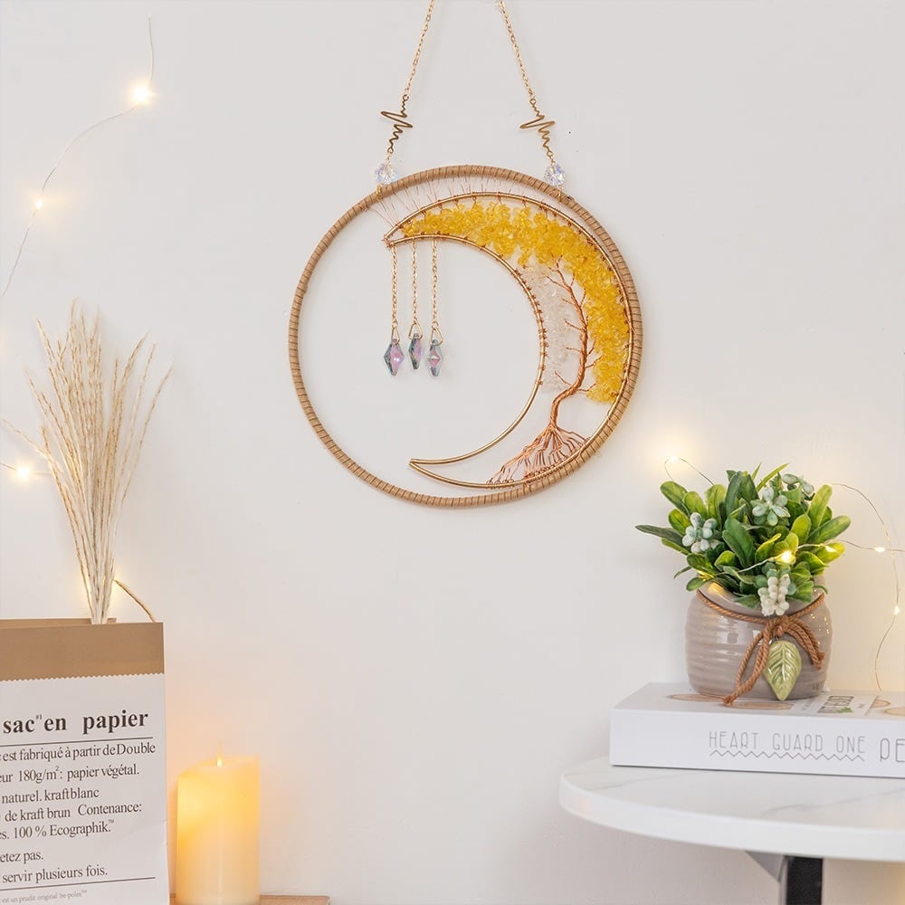 美しい月のデザインが施されたこのドリームキャッチャーは、インテリアとしても魅力的で、部屋の雰囲気を一層引き立てる存在感を放ちます。心の平穏や安らぎを求める方にぴったりのアイテムです。
