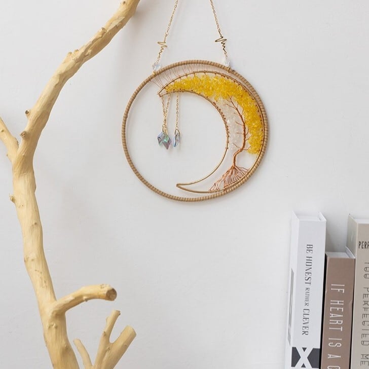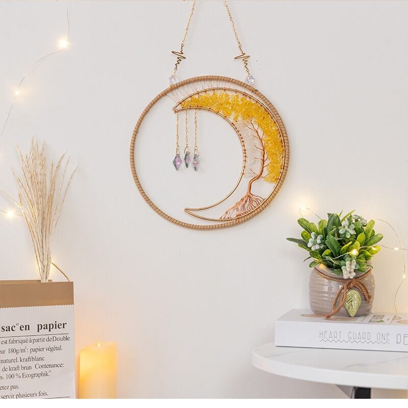 また、ドリームキャッチャーには「邪気を払う」という信仰も込められており、このオブジェを飾ることで、空間に穏やかなエネルギーを引き寄せ、ポジティブなエネルギーを生み出すと言われています。月のデザインが持つ神秘的な魅力と相まって、見るたびに心が落ち着き、周囲の環境も整うことでしょう。