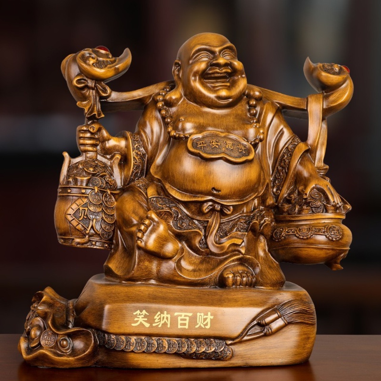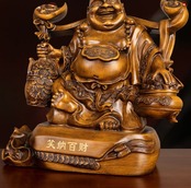 この布袋様の彫刻は、精巧に作られた美しい作品であり、インテリアとしても魅力的です。その存在感は、あなたの空間に穏やかで温かなエネルギーを与え、見るたびに心に安らぎをもたらしてくれることでしょう。また、その飾る場所に合わせて、運気をより一層引き寄せるかもしれません。