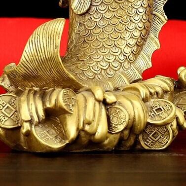 風水やスピリチュアルな意味合いで非常に縁起が良いとされるオブジェです。魚は古くから「豊穣」や「繁栄」の象徴とされ、金色の魚は特に金運を高めると信じられています。その魚がドラゴンの顔を持っているという特徴的なデザインは、さらに特別な意味を持ちます。ドラゴンは中国やアジア文化で「力強さ」「成功」「繁栄」を象徴する存在であり、魚と組み合わさることで、これらのエネルギーが倍増するように感じられます。