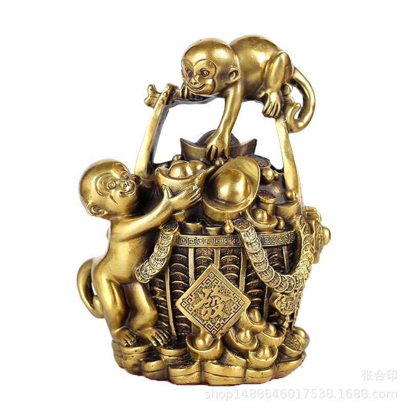 猿 サル 招財 元宝 貯金箱 金色 ゴールド 黄金 銅製 インテリア オブジェ 幸運 長寿 縁起物 魔除け 厄除 開運 幸運 財運 金運 安産祈願 無病息災 子宝 健康運 リビング 豪華 装飾 | 幸せの置場