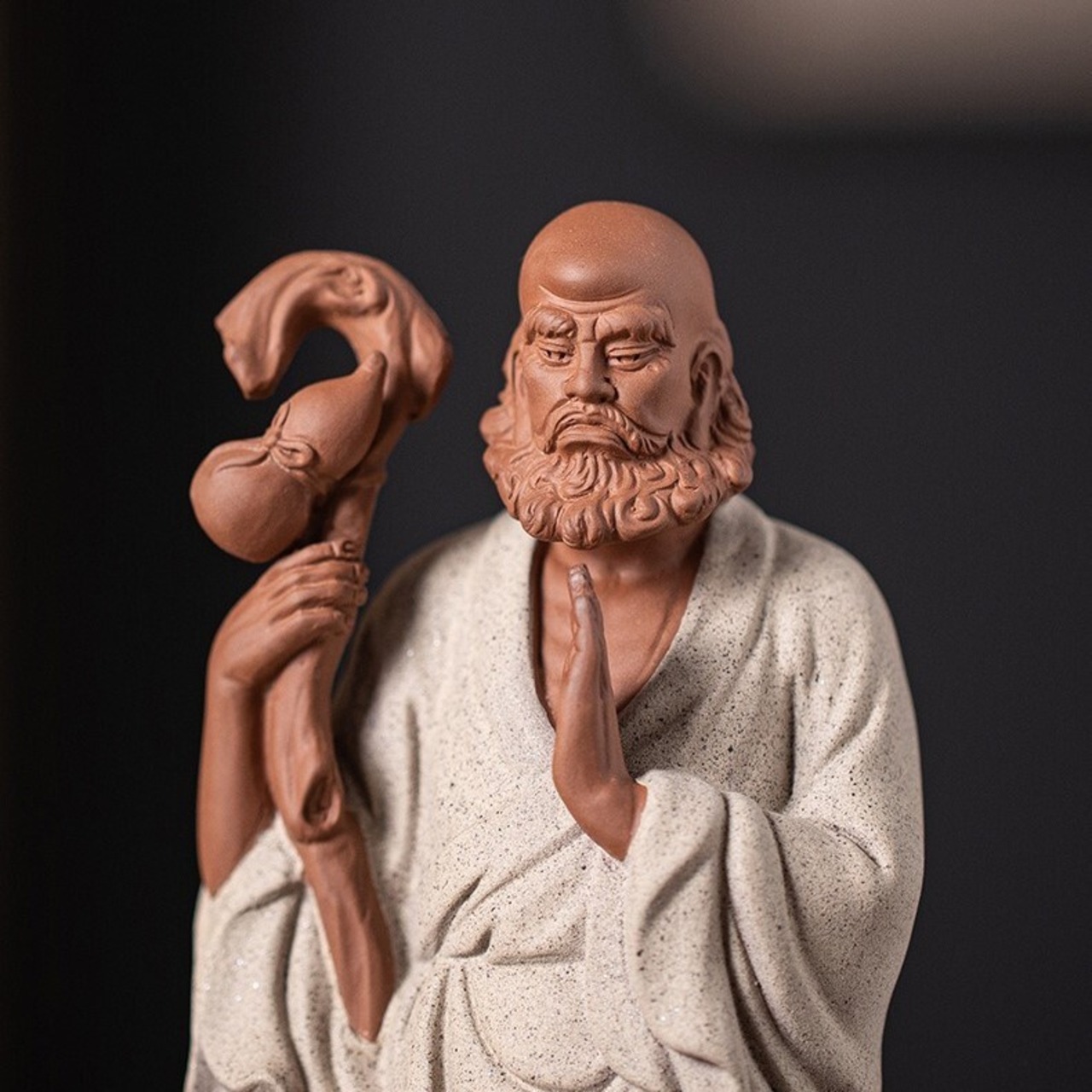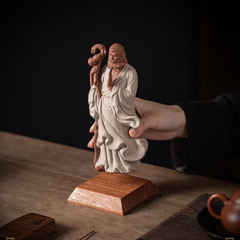 この置物は、高品質の紫砂で丁寧に作り上げられています。紫砂はその優れた耐久性と独特の質感で知られ、中国の伝統工芸品として高く評価されています。その落ち着いた色合いと自然な風合いが、飾る空間に気品と静けさをもたらします。