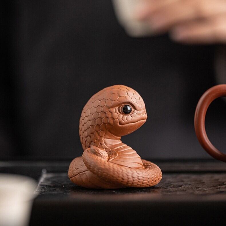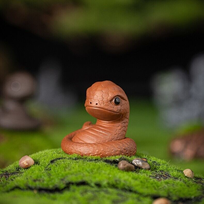 風水においては、蛇は豊穣や富、直感力を高めるシンボルとされています。このミニ置物を飾ることで、生活の中に新たなエネルギーをもたらし、運気を上向きに導くサポートとなるかもしれません。また、その丸みを帯びたフォルムと愛らしい顔立ちは、見ているだけで穏やかな気持ちを引き出してくれるようです。