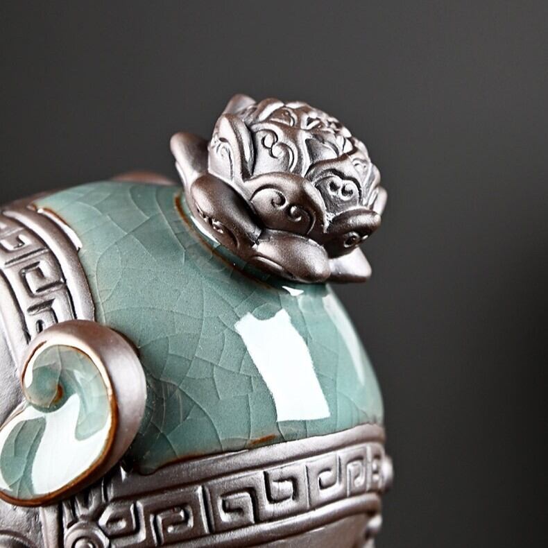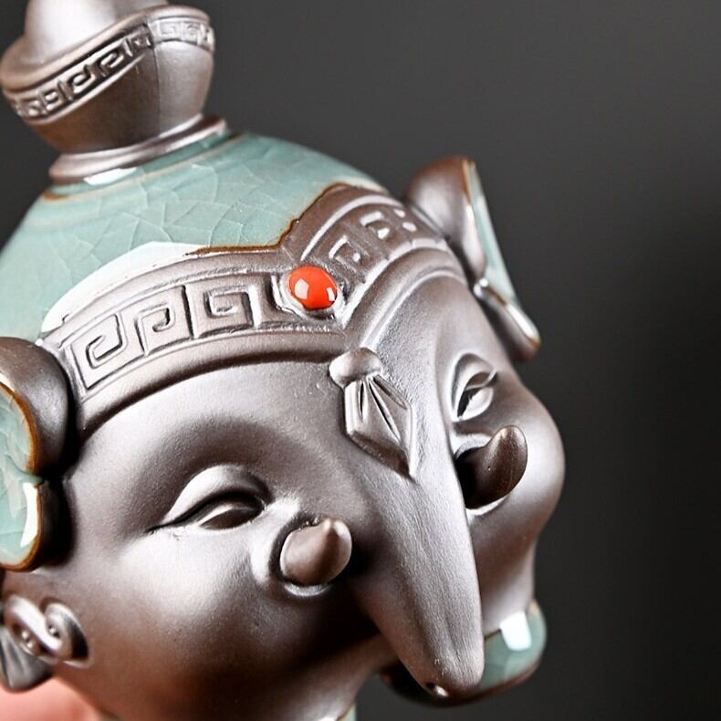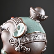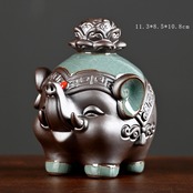 また、象は大地の安定を象徴し、困難を乗り越える力があると信じられており、特にビジネスの成功や家庭運を高めるモチーフとして人気があります。この水色の象のペアは、その美しい色合いと緻密なデザインにより、見る人に癒しと落ち着きを与えます。