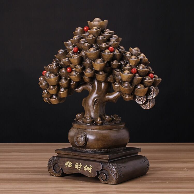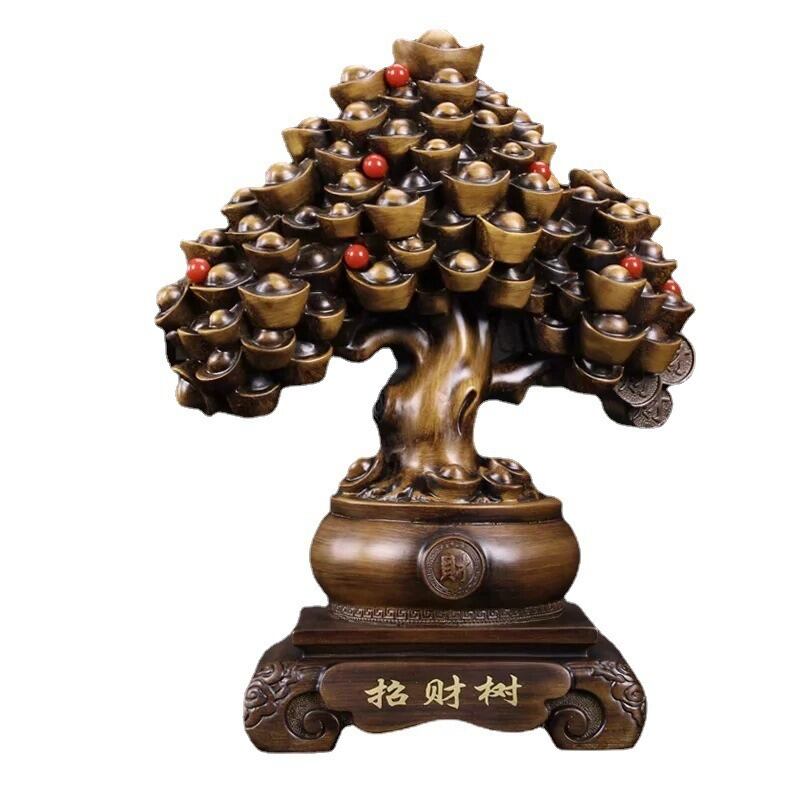 この「金のなる木」は、金色に輝く元宝と豪華なデザインが特徴で、飾るだけで空間に華やかさと高級感を与えてくれます。風水では、このような木のモチーフは、エネルギーの流れを整え、豊かさを引き寄せる効果があると信じられてきました。特に、リビングやオフィスの入り口付近に配置することで、ポジティブなエネルギーを取り込みやすいと考えられています。